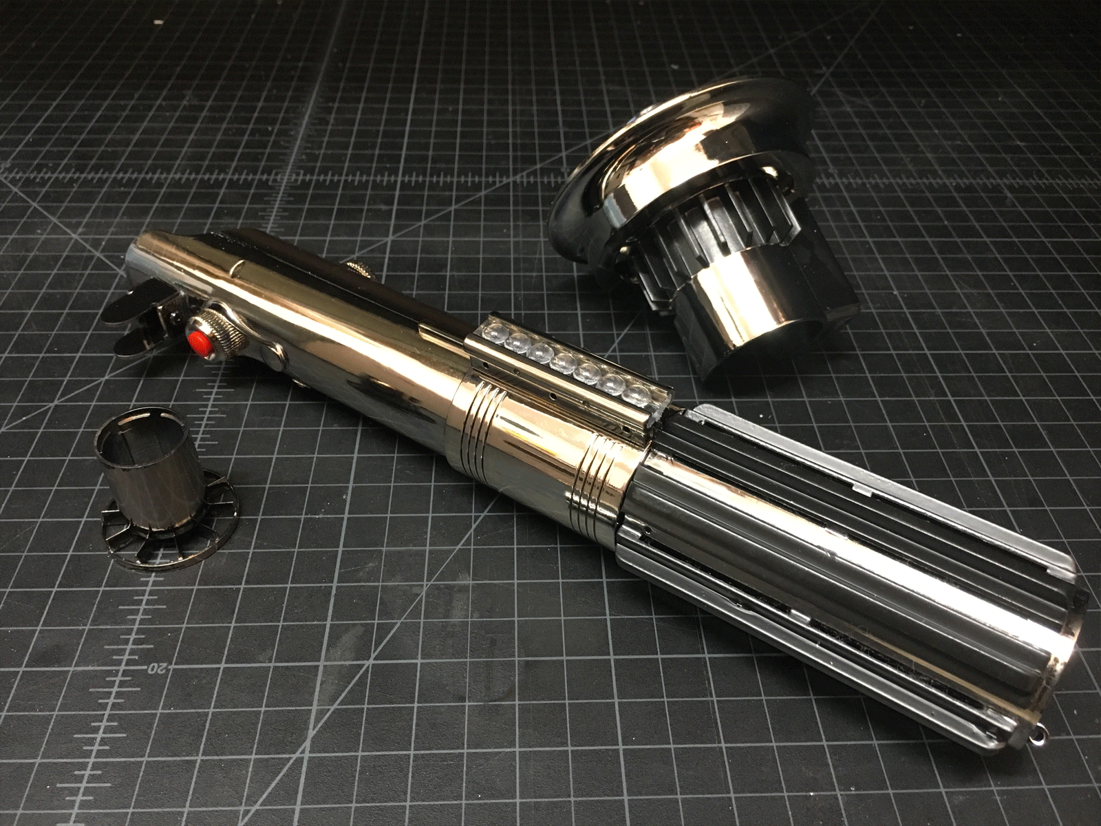 Chrome and other metal plating on 3d printed plastic parts. We have worked with Hasbro’s Star Wars teams for many years and have built many Saber concepts. Sometimes to get a huge licensors approval, your product needs to look like the real Luke Skywalker’s light saber. This SLA prototype was cleaned up to meticulous detail with fine sandpaper, before being coated in actual real chrome and black rubberized handle effects.